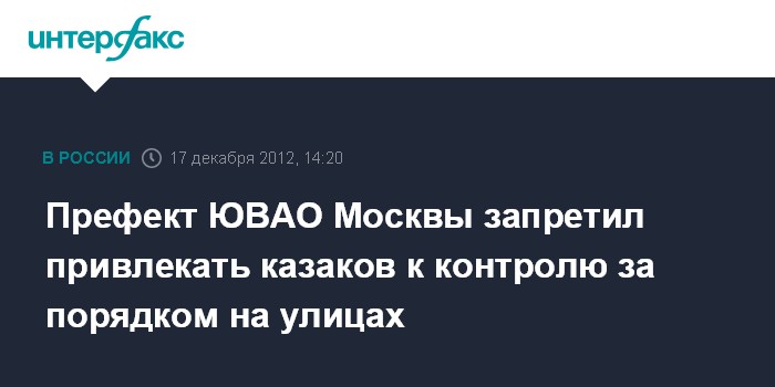 Москва. 17 декабря. INTERFAX.RU - В префектуре юго-восточного административного округа называют ложной информацию о том, что власти округа якобы разрешили казачьим патрулям работать без сопровождения полицейских в качестве народных контролеров.