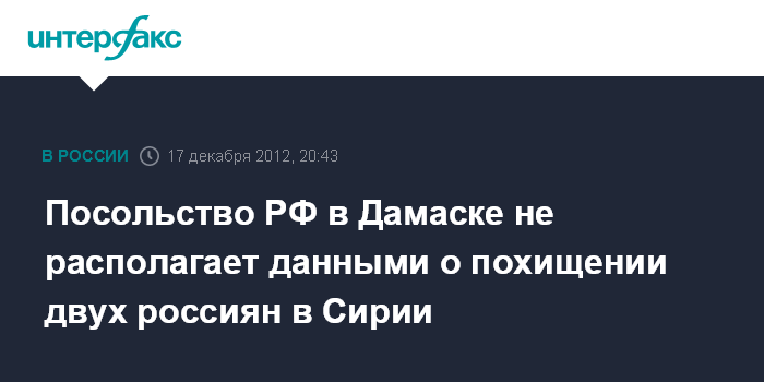"Посольство проверяет эти сведения. Никаких данных о похищении россиян на территории Сирии не поступало", - сказал он.