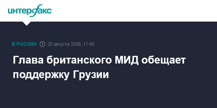 Москва. 20 августа. INTERFAX.RU - Великобритания приложит необходимые усилия в поддержку территориальной целостности Грузии, заявил глава МИД Великобритании Дэвид Миллибэнд.