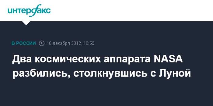 Вашингтон. 18 декабря. INTERFAX.RU - Два космических аппарата-близнеца НАСА, названные "Эб" и "Флоу", разбились после завершения своей миссии по изучению и составлению карты Луны, сообщили во вторник в NASA.