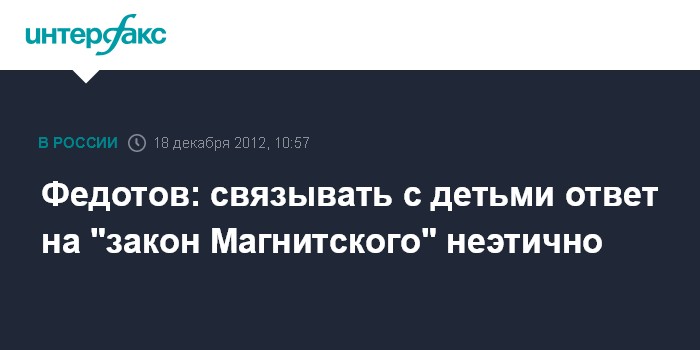 "Связывать это с больными российскими детьми - я считаю, это просто неэтично", - заявил Федотов "Интерфаксу" во вторник.