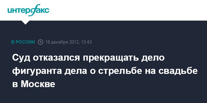 Москва. 18 декабря. INTERFAX.RU - Никулинский суд Москвы отказался прекратить уголовное дело в отношении восемнадцатилетнего уроженца Азербайджана Сеймура Набизаде, обвиняемого в стрельбе на свадьбе на западе Москвы.