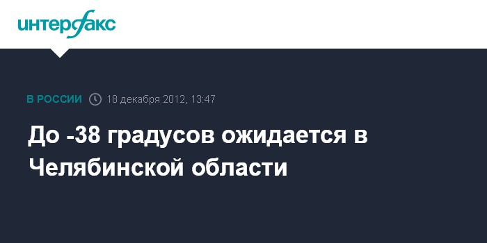 Челябинск. 18 декабря. INTERFAX.RU - До конца недели в Челябинской области сохранится морозная погода, сообщает пресс-служба ГУ МЧС РФ по региону во вторник.
