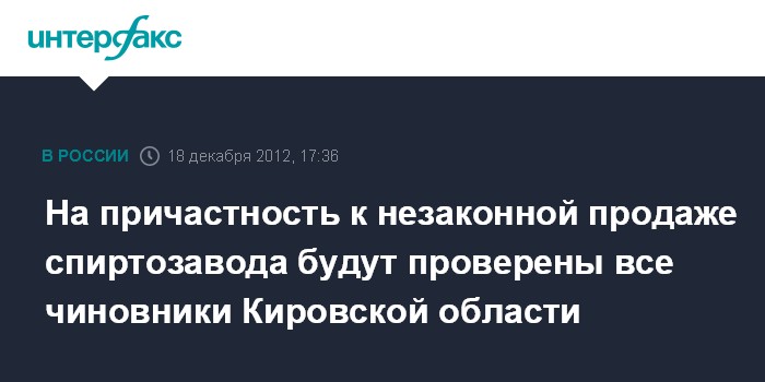 На причастность к незаконной продаже спиртозавода будут проверены все чиновники Кировской области
