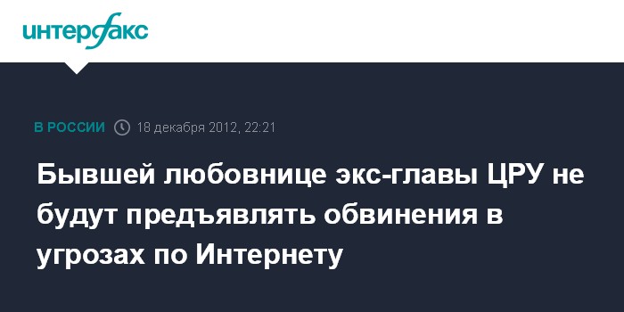 Бывшей любовнице экс-главы ЦРУ не будут предъявлять обвинения в угрозах по Интернету