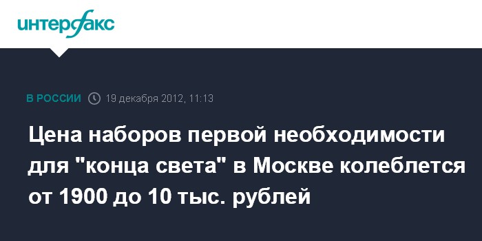 Цена наборов первой необходимости для "конца света" в Москве колеблется от 1900 до 10 тыс. рублей