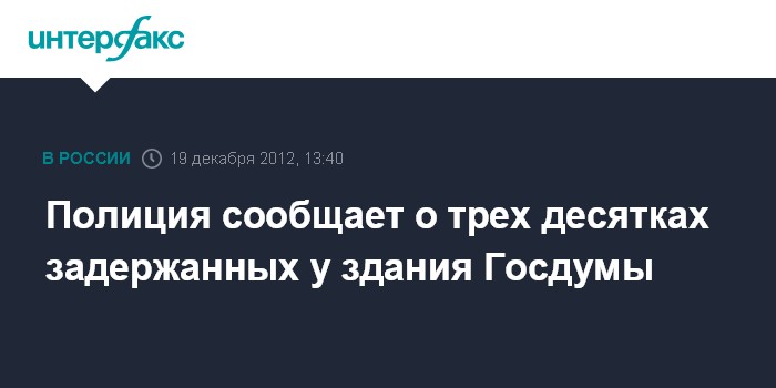 Москва. 19 декабря. INTERFAX.RU - Около 30 человек доставлены в полицию за участие в несанкционированной акции около Госдумы, сообщили "Интерфаксу" в пресс-службе ГУ МВД России по Москве.
