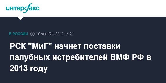 Москва. 19 декабря. INTERFAX.RU - Параллельно с поставками МиГ-29К для Индии в 2013 году входящая в Объединенную авиастроительную корпорацию (ОАК) РСК "МиГ" начнет поставки этих палубных истребителей для ВМФ России, сообщил в среду на пресс-конференции президент ОАК Михаил Погосян.