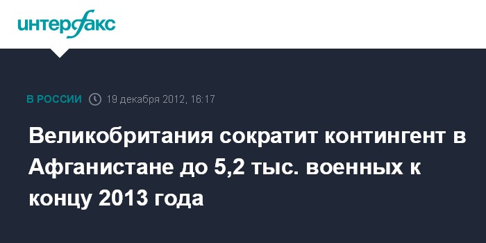 Лондон. 19 декабря. INTERFAX.RU - Премьер Великобритании Дэвид Кэмерон объявил в среду о решении сократить контингент своей страны в Афганистане до 5,2 тыс. военнослужащих к концу 2013 года.