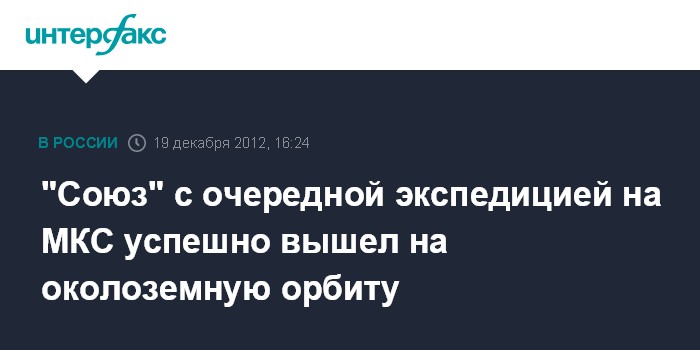 Байконур (Казахстан). 19 декабря. INTERFAX.RU - Седьмой пилотируемый корабль цифровой серии "Союз ТМА-07М", стартовавший в среду в 16:12 мск с "Гагаринского страрта" Байконура, отделился от ракеты-носителя и вышел на расчетную околоземную орбиту.