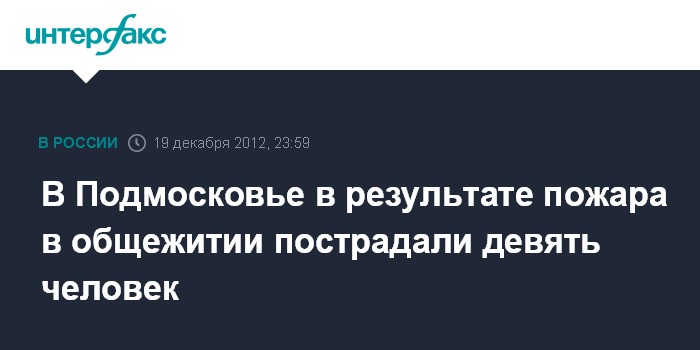 Москва. 19 декабря. INTERFAX.RU - Девять человек пострадали в результате пожара в общежитии в Люберецком районе Подмосковья, сообщил "Интерфаксу" источник в правоохранительных органах.