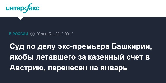 Суд по делу экс-премьера Башкирии, якобы летавшего за казенный счет в Австрию, перенесен на январь