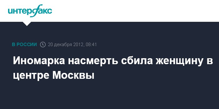 Москва. 20 декабря. INTERFAX.RU - В результате ДТП у площади трех вокзалов в центре Москвы погибла женщина, сообщили в четверг "Интерфаксу" в пресс-службе столичного ГУ МВД России.