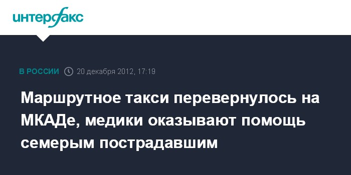 Москва. 20 декабря. INTERFAX.RU - Семь человек пострадали в результате опрокидывания "маршрутки" на МКАД на севере столицы, сообщил "Интерфаксу" источник в правоохранительных органах.