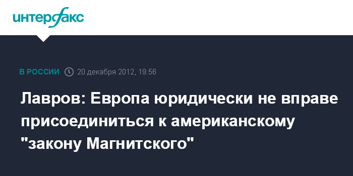 Лавров: Европа юридически не вправе присоединиться к американскому "закону Магнитского"