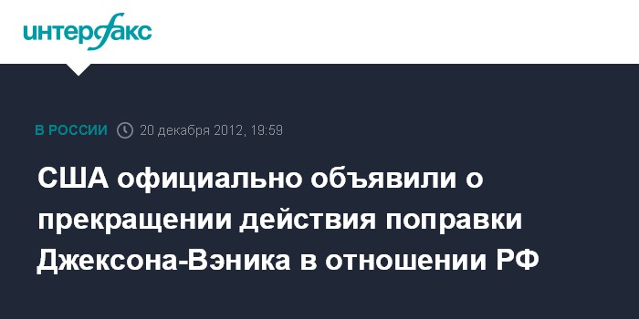 США официально объявили о прекращении действия поправки Джексона-Вэника в отношении РФ