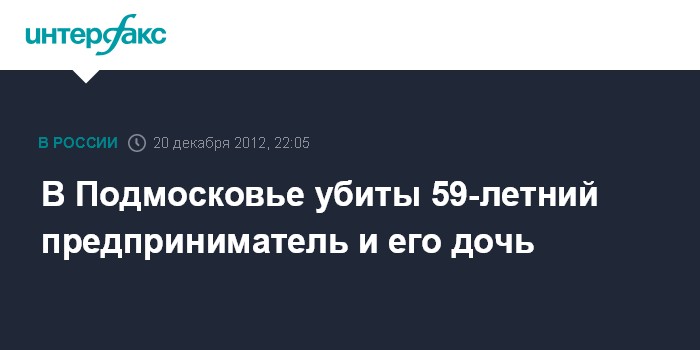 Москва. 20 декабря. INTERFAX.RU - Уголовное дело возбуждено по факту убийства предпринимателя и его дочери в подмосковной Балашихе, сообщила официальный представитель областного управления СКР Ирина Гуменная.