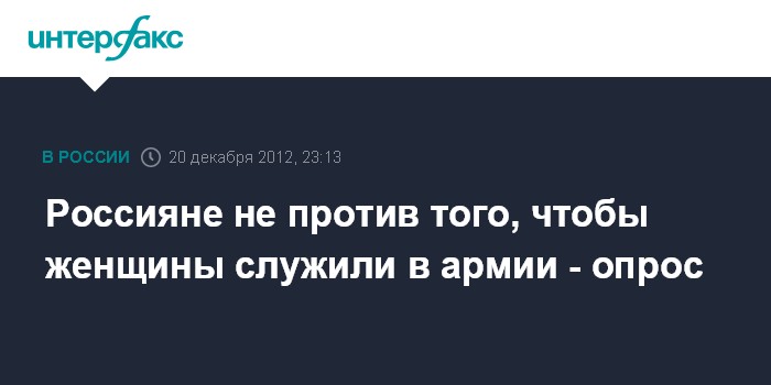 Москва. 20 декабря. INTERFAX.RU - Половина россиян считает, что женщины должны служить в армии, но только по собственному желанию (49%).