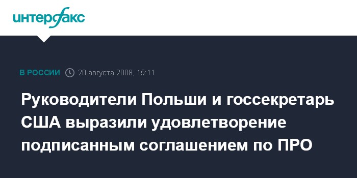 Москва. 20 августа. INTERFAX.RU - Премьер и президент Польши Дональд Туск и Лех Качиньский, а также госсекретарь США Кондолиза Райс выступили перед журналистами в среду после подписания польско-американского соглашения о размещении элементов американской ПРО на польской территории.