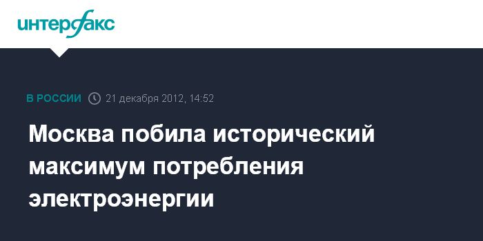 Для сравнения он привел статистику прошлой зимы. Так, 13 февраля 2012 г. пик энергопотребления достигал 17,556 тыс. мегаватт. "Напомню, что максимум по потреблению электроэнергии столицы в нынешнем году был перекрыт уже несколько раз", - отметил глава департамента.