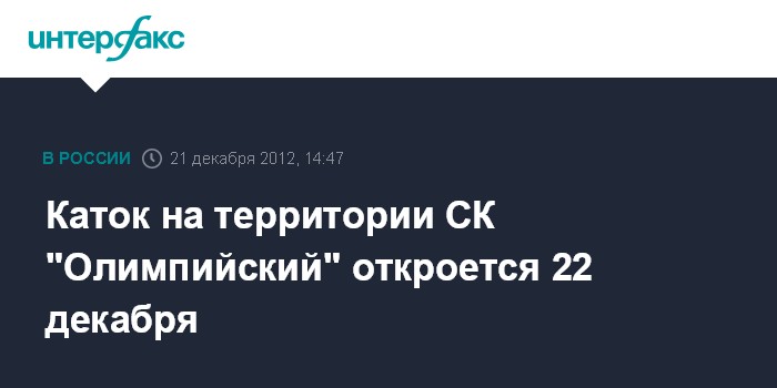 Каток на территории СК "Олимпийский" откроется 22 декабря