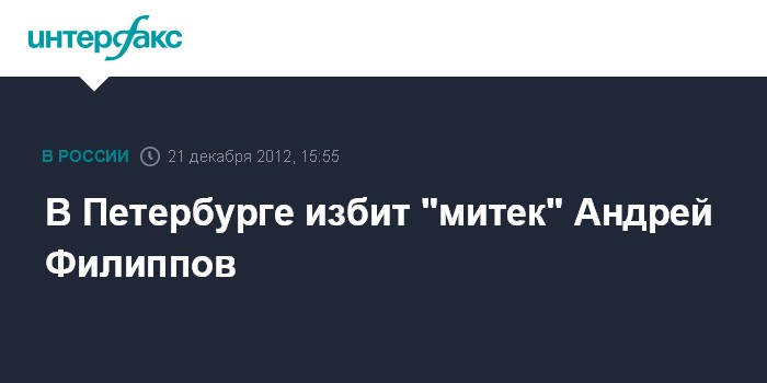 Санкт-Петербург. 21 декабря. INTERFAX.RU - В Петербурге неизвестный избил художника из творческого объединения "Митьки" Андрея Филиппова, рассказала "Интерфаксу" в пятницу его жена Светлана.