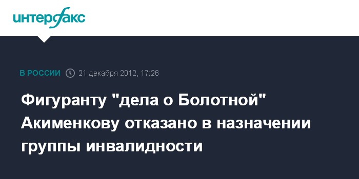 Фигуранту "дела о Болотной" Акименкову отказано в назначении группы инвалидности