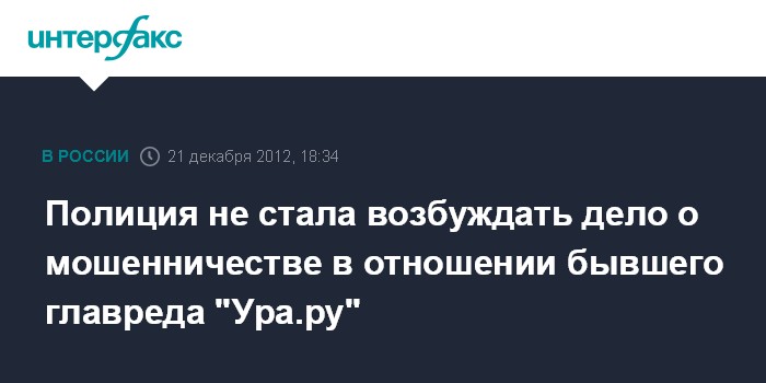 Полиция не стала возбуждать дело о мошенничестве в отношении бывшего главреда "Ура.ру"