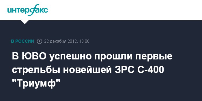 Москва. 22 декабря. ИНТЕРФАКС-АВН - На полигоне Капустин Яр (Астраханская область) состоялась передача комплексов зенитной ракетной системы (ЗРС) С-400 "Триумф" одному из соединений ПВО Южного военного округа (ЮВО), сообщает в субботу пресс-служба ЮВО.