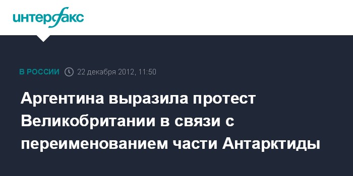 В протесте аргентинских властей "решительно отвергаются" претензии Лондона на часть Антарктиды, известной в Великобритании как Британские антарктические территории. Буэнос-Айрес заявил, что считает эту территорию своей и что Великобритания не имеет права ее переименовывать, отмечает "Би-би-си".