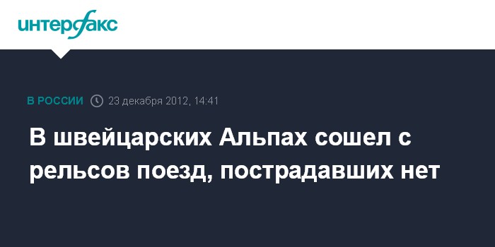 Берн. 23 декабря. INTERFAX.RU - Поезд сошел с рельсов в швейцарских Альпах в воскресенье утром, при аварии никто не пострадал, сообщили местные СМИ.