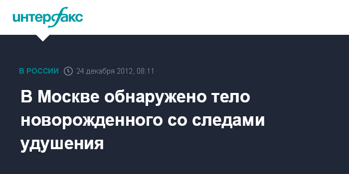В Москве обнаружено тело новорожденного со следами удушения