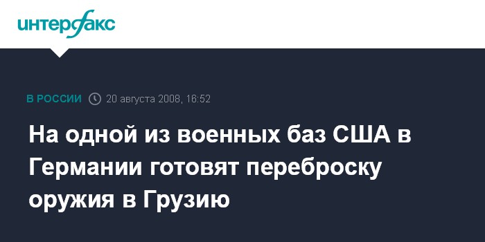 Москва. 20 августа. INETRFAX.RU - Партия оружия и боеприпасов может быть переброшена с одной из военных баз США в Германии в Тбилиси в среду, утверждает информированный источник.