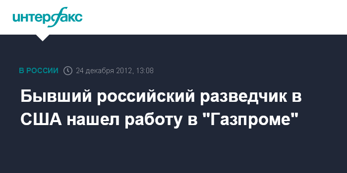 Бывший российский разведчик в США нашел работу в "Газпроме"