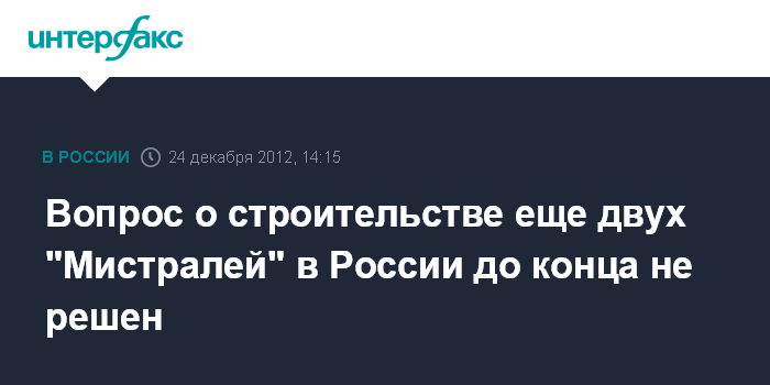 Нью-Дели. 24 декабря. INTERFAX.RU - Вопрос о строительстве в России двух вертолетоносцев "Мистраль" будет решен только после того, как они будут проверены в действии, заявил вице-премьер Дмитрий Рогозин.