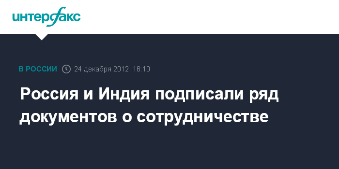 Нью-Дели. 24 декабря. INTERFAX.RU - Россия и Индия подписали ряд документов о двустороннем сотрудничестве в рамках визита президента РФ Владимира Путина в Нью-Дели.