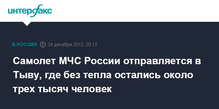 "По поручению главы МЧС России Владимира Пучкова с подмосковного аэродрома "Раменское" в республику Тыва планируется направить самолет Ил-76 МЧС России с грузом гуманитарной помощи", - сообщили "Интерфаксу" в понедельник управлении информации министерства.