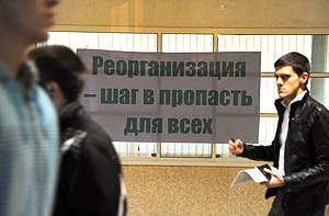 Напомним, 1 ноября Минобрнауки опубликовал список вузов, в которых обнаружены признаки неэффективности, в Москве таковых оказалось два десятка. В список, в частности, вошел и Российский государственный торгово-экономический университет (РГТЭУ). 18 декабря студенты РГТЭУ начали бессрочную круглосуточную забастовку в знак протеста против реорганизации вуза. В ночь на 20 декабря в ней приняло участие 400 студентов. На следующий день появилась информация о том, что Госдума намерена запросить в правительстве информацию о мерах по стабилизации ситуации вокруг РГТЭУ. В связи с этим утром 20 декабря забастовка студентов была прекращена. На следующий день Минобрнауки РФ приняло решение о присоединении РГТЭУ к Российскому экономическому университету им. Г.В.Плеханова (РЭУ им. Г.В. Плеханова). После этого появилась информация о том, что забастовка может быть возобновлена.