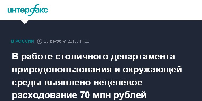 Москва. 25 декабря. INTERFAX.RU - Прокуратура Москвы выявила ряд нарушений в работе столичного департамента природопользования и окружающей среды, в том числе - незаконное расходование почти 70 млн рублей в подведомственной структуре.