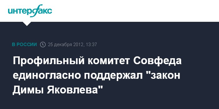 Профильный комитет Совфеда единогласно поддержал "закон Димы Яковлева"