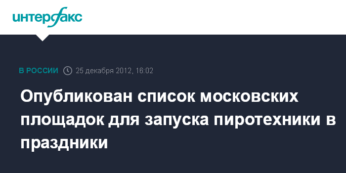 Москва. 25 декабря. INTERFAX.RU - Столичные спасатели опубликовали список площадок для использования населением бытовой пиротехники в период празднования Нового года и Рождества.