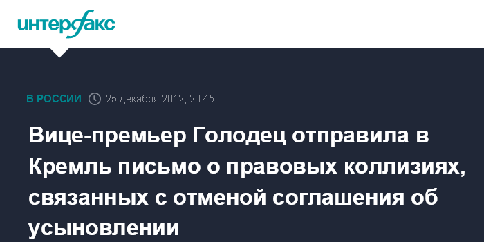 Вице-премьер Голодец отправила в Кремль письмо о правовых коллизиях, связанных с отменой соглашения об усыновлении