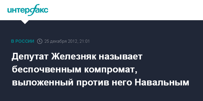 Москва. 25 декабря. INTERFAX.RU - Вице-спикер Госдумы, замсекретаря Генсовета "Единой России" Сергей Железняк считает беспочвенными обвинения, выдвинутые в его адрес политиком и блогером Алексеем Навальным. "Алексей очень невнимательно, а скорее, специально неряшливо подготовился к изданию "компромата" по поводу меня и моих детей", - написал Железняк в своем блоге в Facebook во вторник.