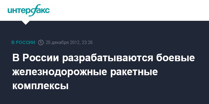 Москва. 26 декабря. INTERFAX.RU - В России развернуты научно-исследовательские работы по созданию боевых железнодорожных ракетных комплексов (БЖРК), сообщает газета "Московский комсомолец" со ссылкой на неназванные источники в ракетной отрасли.