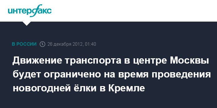 Москва. 26 декабря. ИНТЕРФАКС - Ограничения движения транспорта будут введены в центре столицы в среду - в день первой Кремлевской ёлки, сообщили "Интерфаксу" в управлении ГИБДД Москвы.