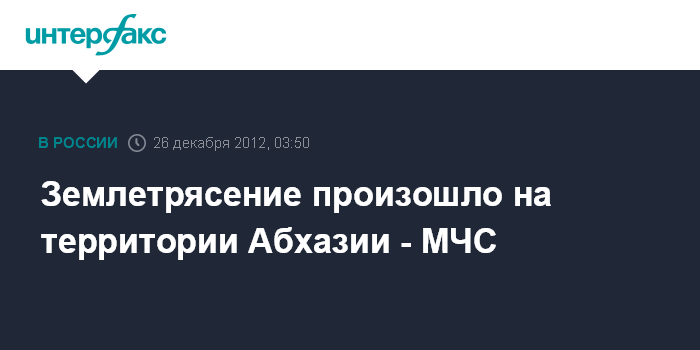 Сухум. 26 декабря. ИНТЕРФАКС - Землетрясение произошло на территории Абхазии в ночь на среду, сообщили "Интерфаксу" в управлении чрезвычайных ситуаций республики.