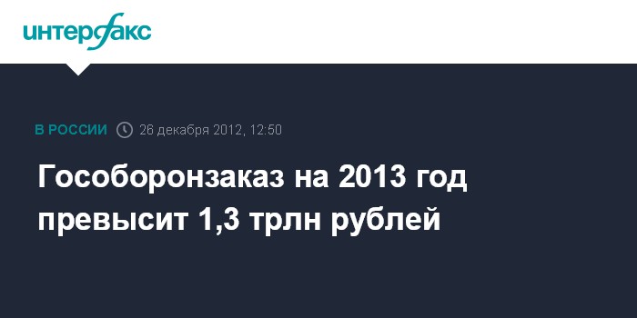 Гособоронзаказ на 2013 год превысит 1,3 трлн рублей