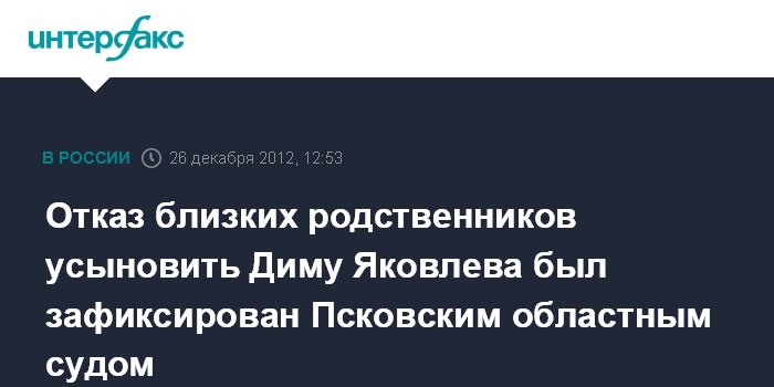 Отказ близких родственников усыновить Диму Яковлева был зафиксирован Псковским областным судом