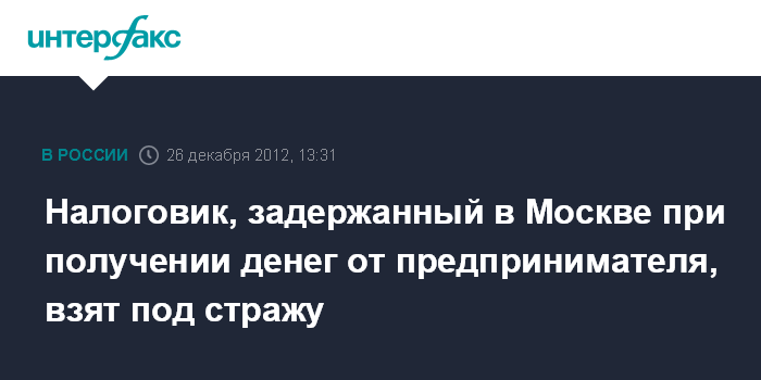 Москва. 26 декабря. INTERFAX.RU - Задержанный ранее за взятку в Москве сотрудник налоговой службы заключен под стражу, сообщили "Интерфаксу" в пресс-службе ГСУ СК РФ по Москве.