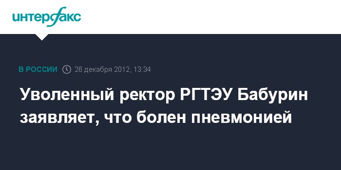 Москва. 26 декабря. INTERFAX.RU - Бывший ректор РГТЭУ Сергей Бабурин, снятый с должности накануне, находится в больнице с пневмонией.